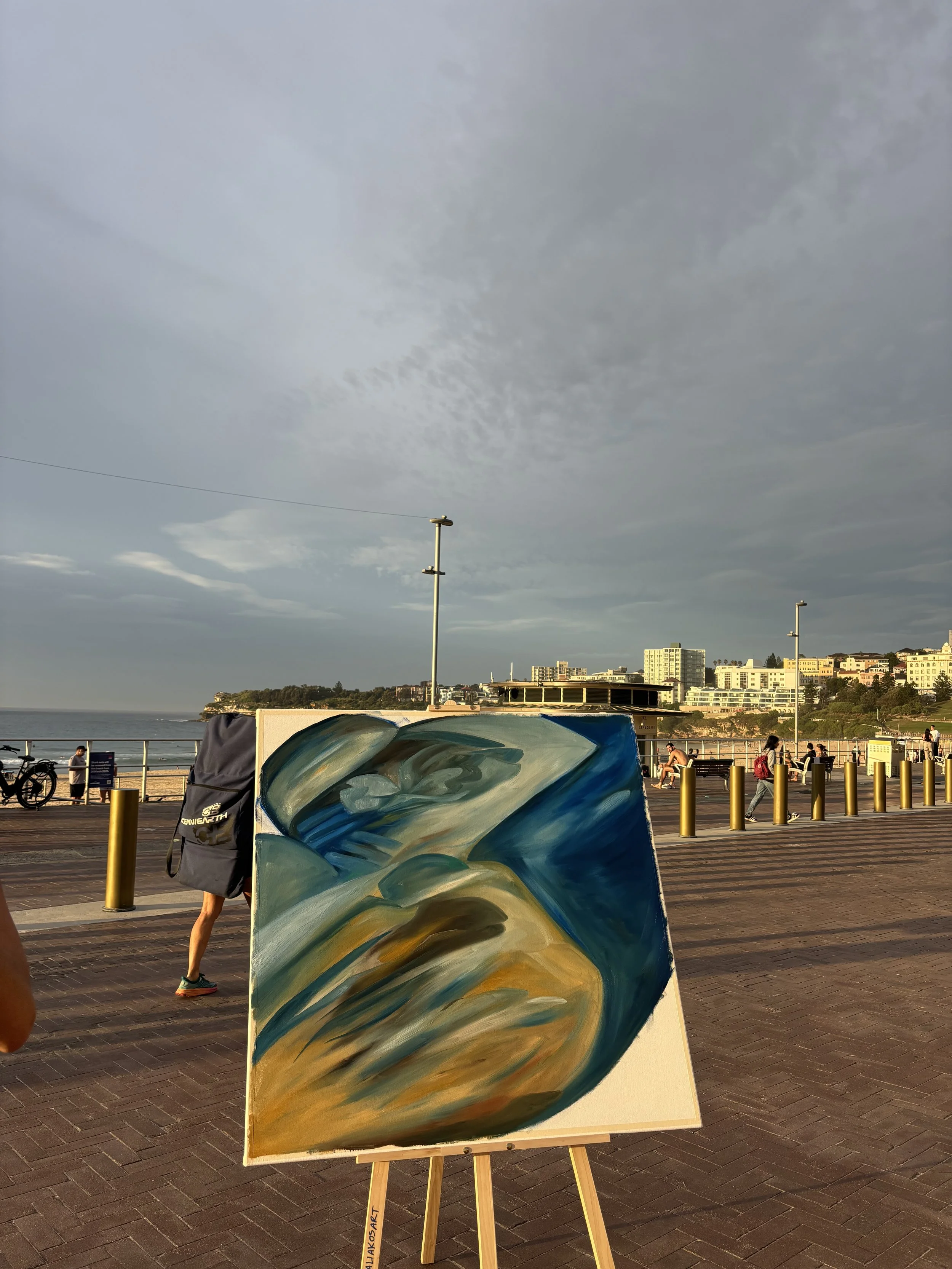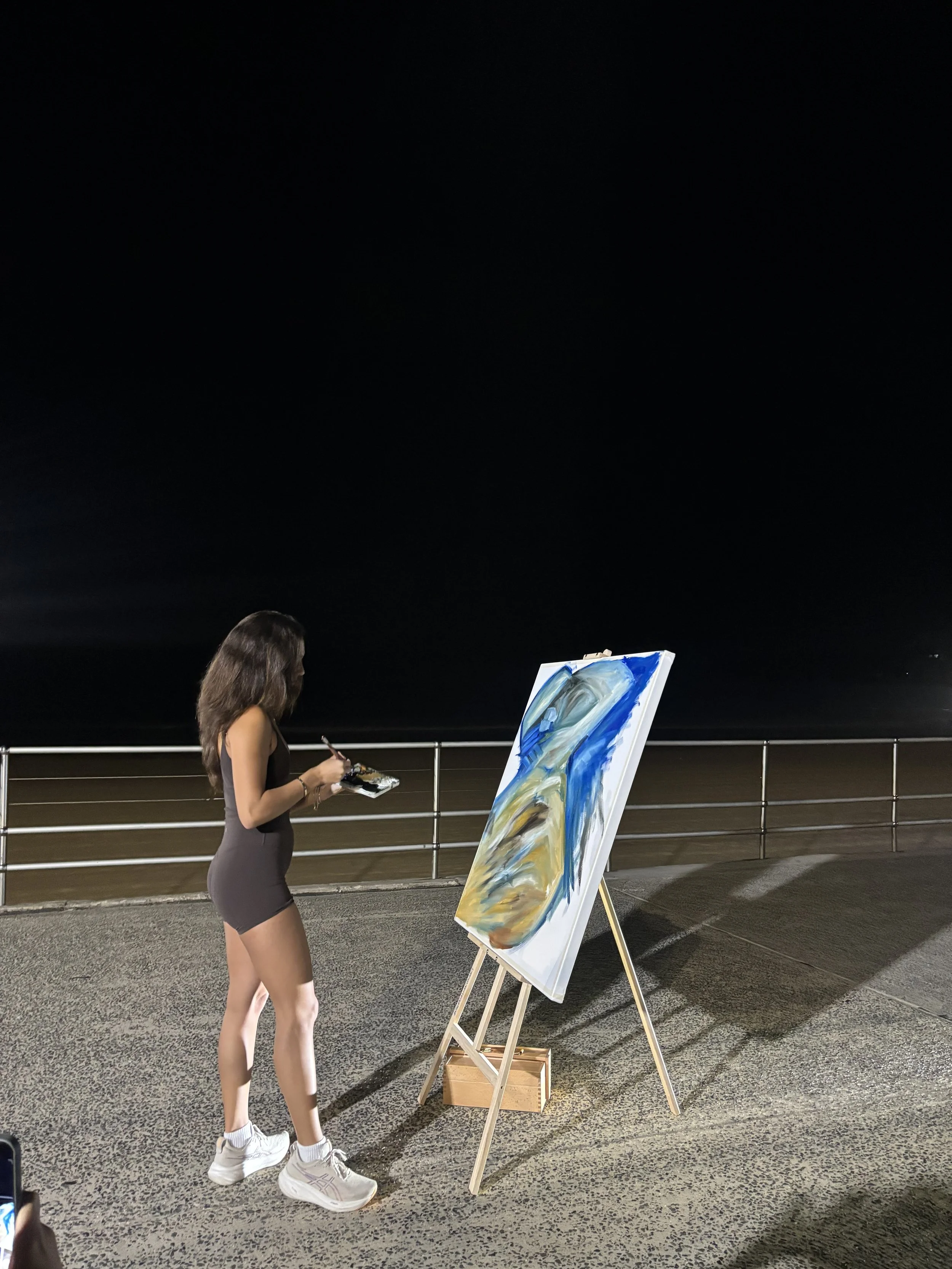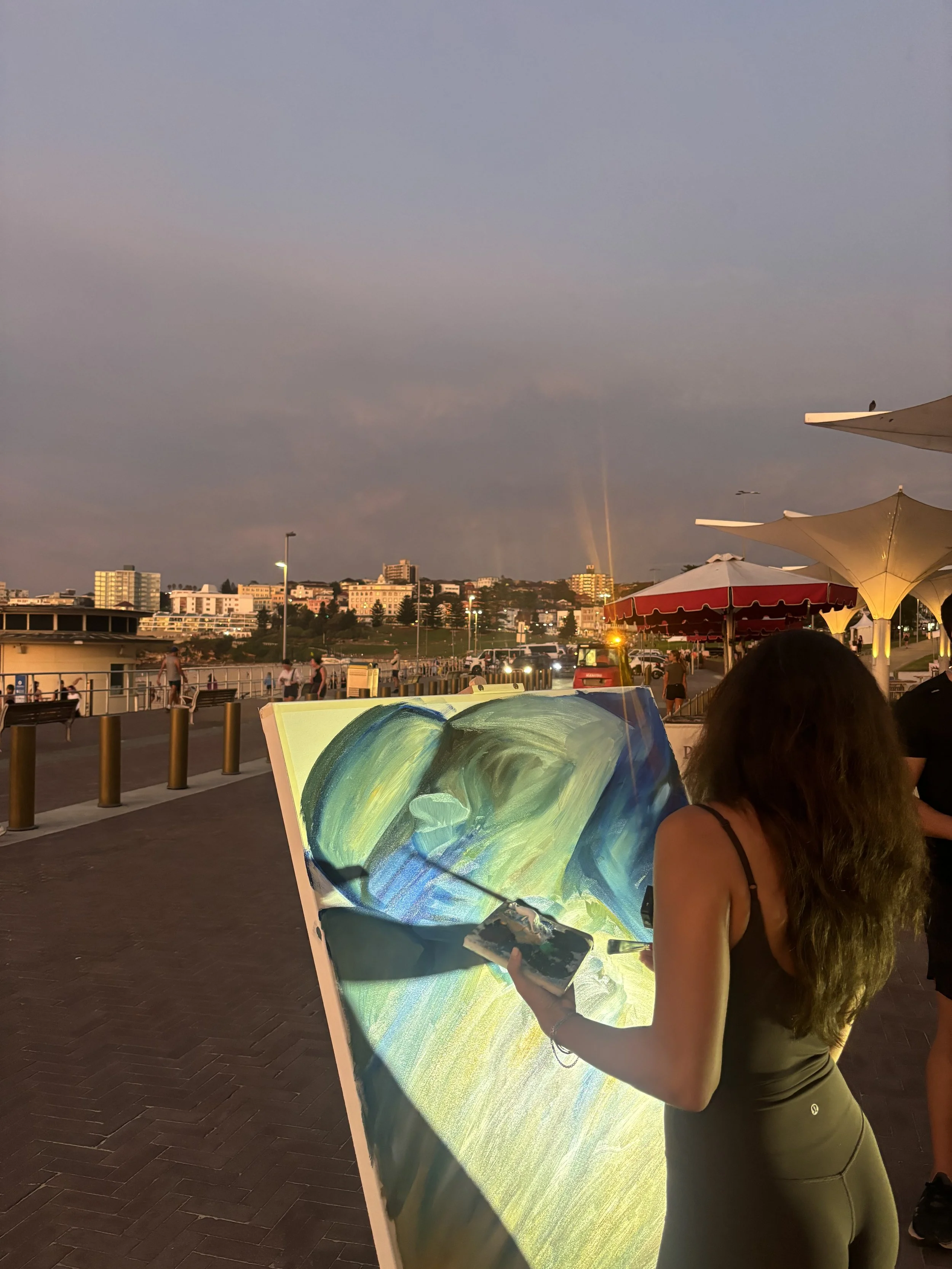 The Bondi Runner marks the launch of a new live painting series that places art directly within its environment, drawing on the spirit of the location and the people who inhabit it. More than a finished canvas, each piece is a time-stamped moment of connection—between place, community, and artist—embodying the idea that art is not separate from life, but created in dialogue with it.